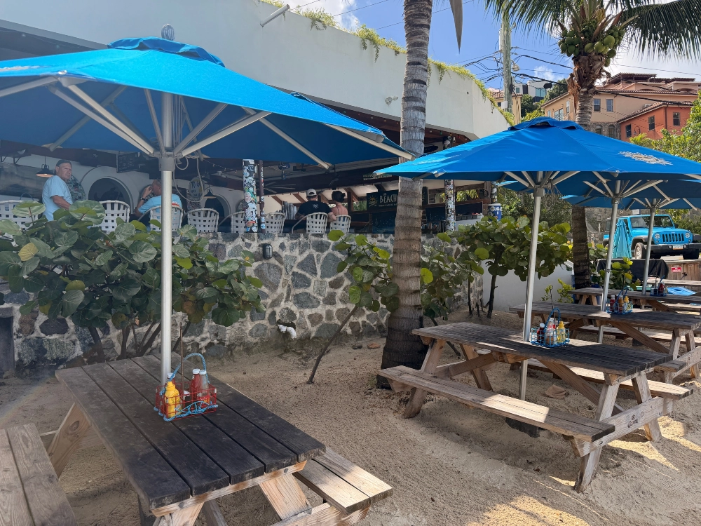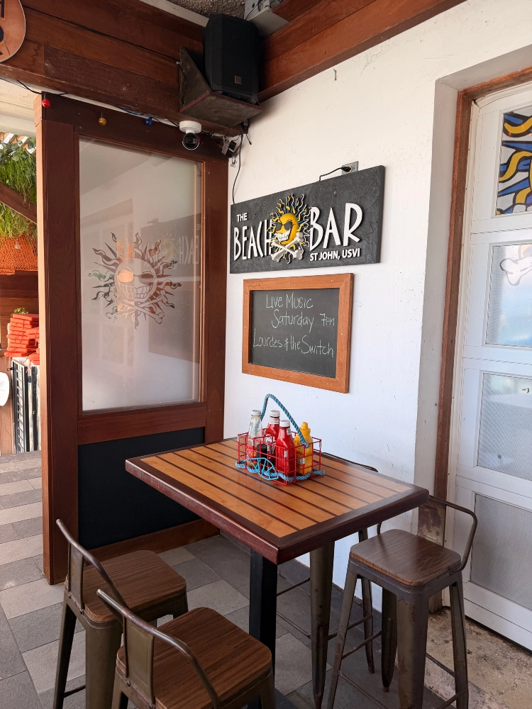 The Beach Bar is within stumbling distance to the Cruz Bay ferry dock, so it’s a great first or last stop. And stops in between. And late nights. And early mornings. Ok fine, pretty much anytime. The Beach Bum has no regrets.