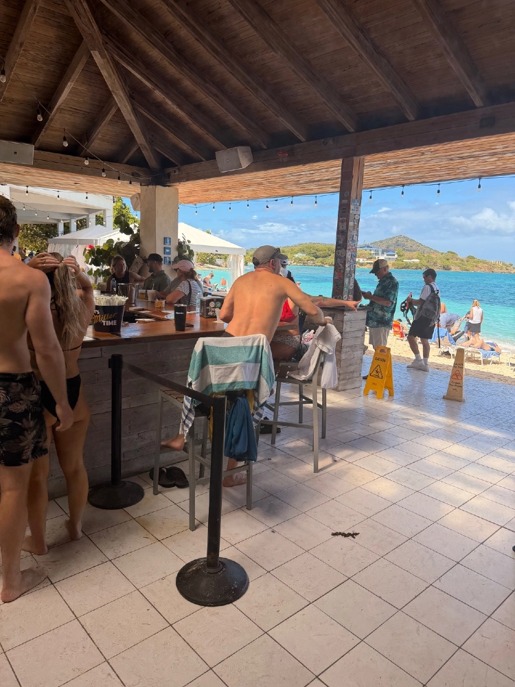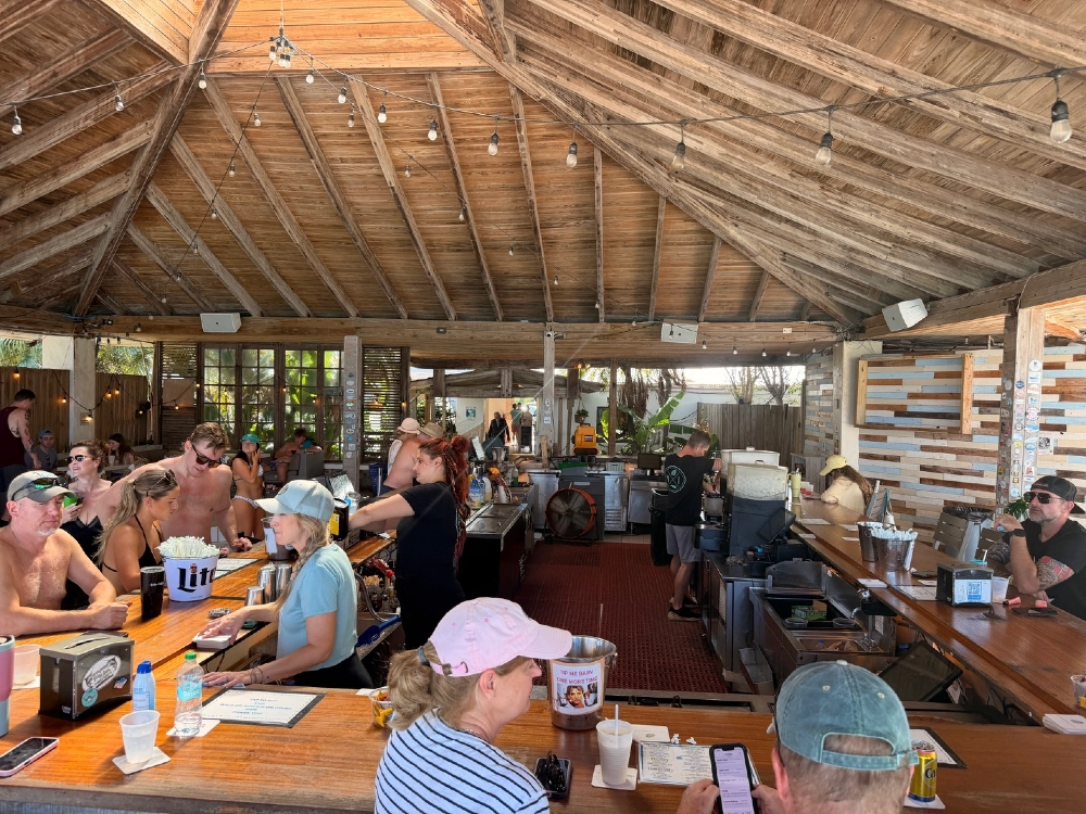 THIS is a beach bar. With an expansive covered area facing the sand – and just beyond, blue Caribbean water. Sublime, to say the least.